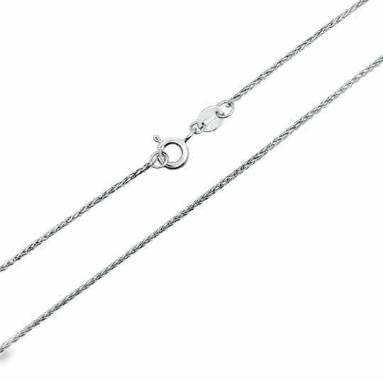 White 14 Karat Diamond Cut 1Mm Solid Spiga Wheat Chain Length 18