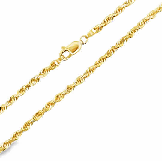 Yellow 14 Karat 3Mm Solid Glitter, Rope Chain Length 20
